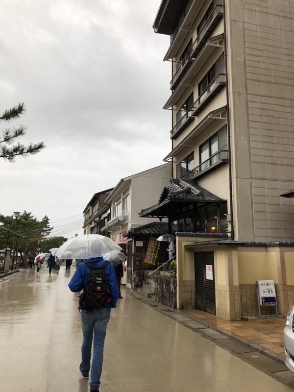A peine les valises déposées en garde à l’hôtel en attendant que la chambre soit prête, nous partons faire les premières photos du Torii, malheureusement sous la pluie.